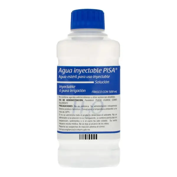 Pisa Agua Inyectable Para Irrigación Con 500 Ml. La imagen que se muestra es de carácter ilustrativo, por lo que el producto puede variar.